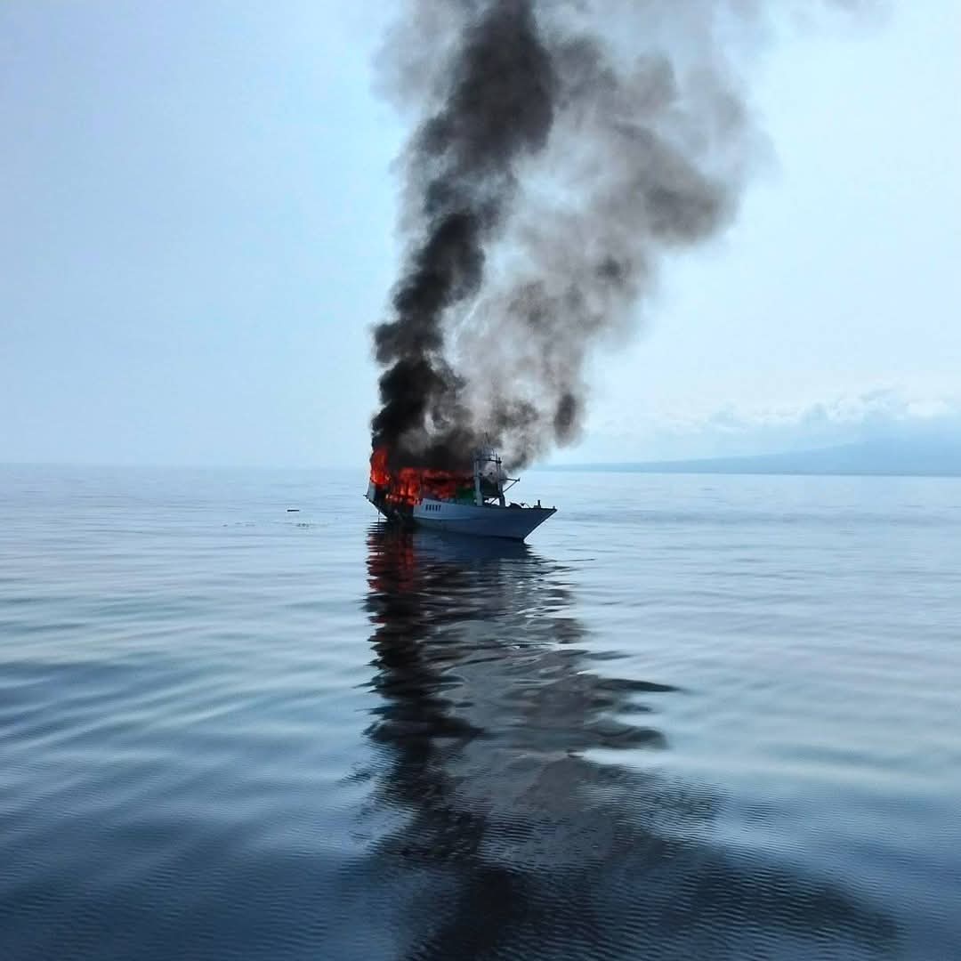Kapal Nelayan yang berasal dari pulau Sumbawa yang akan menuju ke Pulau Bali tersebut terbakar diperairan Dusun Gili Meno, Desa Gili Indah, Kecamatan Pemenang KLU