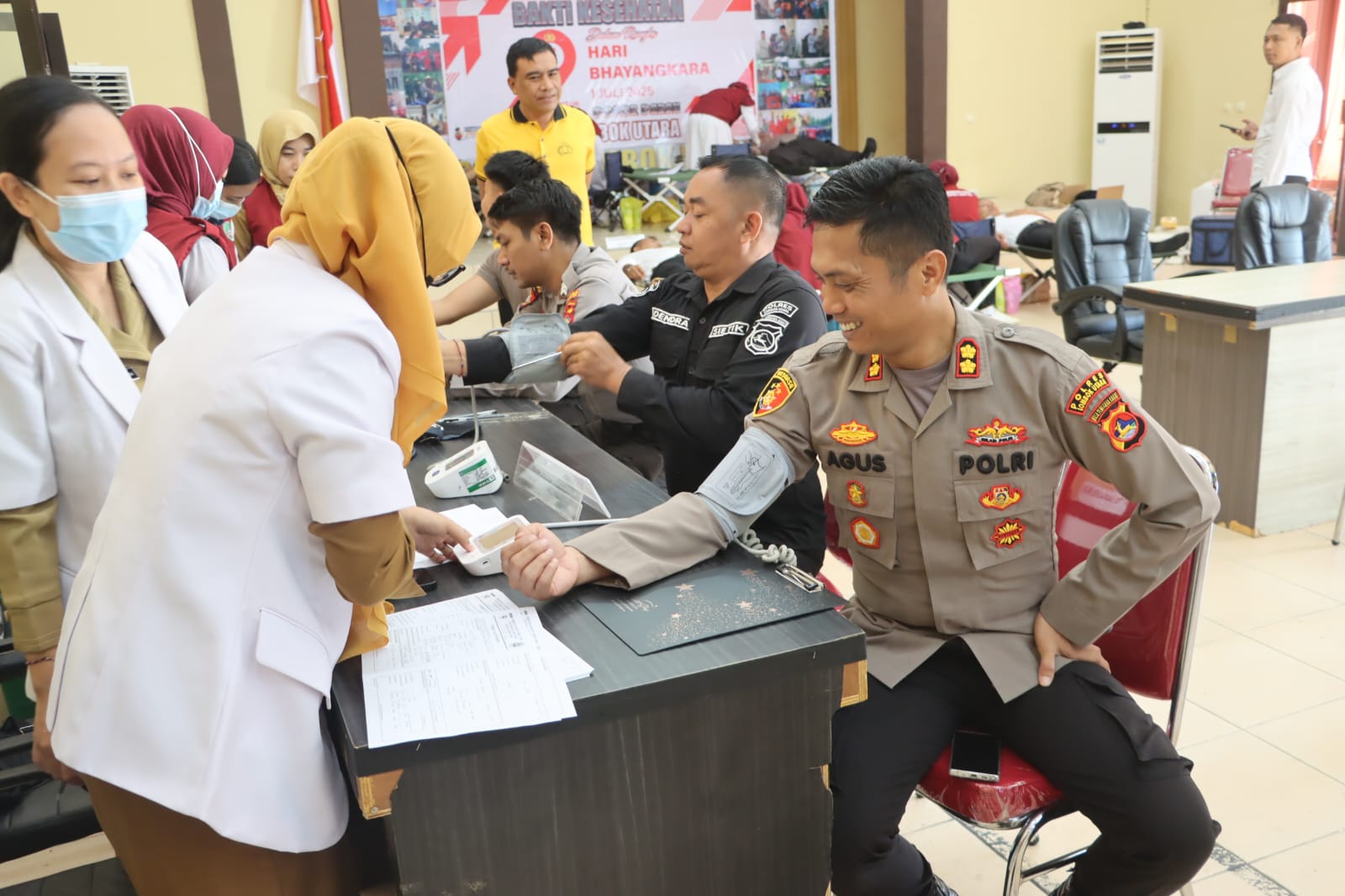 Lombok Utara – Dalam rangka menyambut Hari Bhayangkara ke-79, Polres Lombok Utara menggelar kegiatan bhakti kesehatan berupa donor darah yang berlangsung di Aula Sarja Arya Racana, Polres Lombok Utara, pada Senin (16/6).