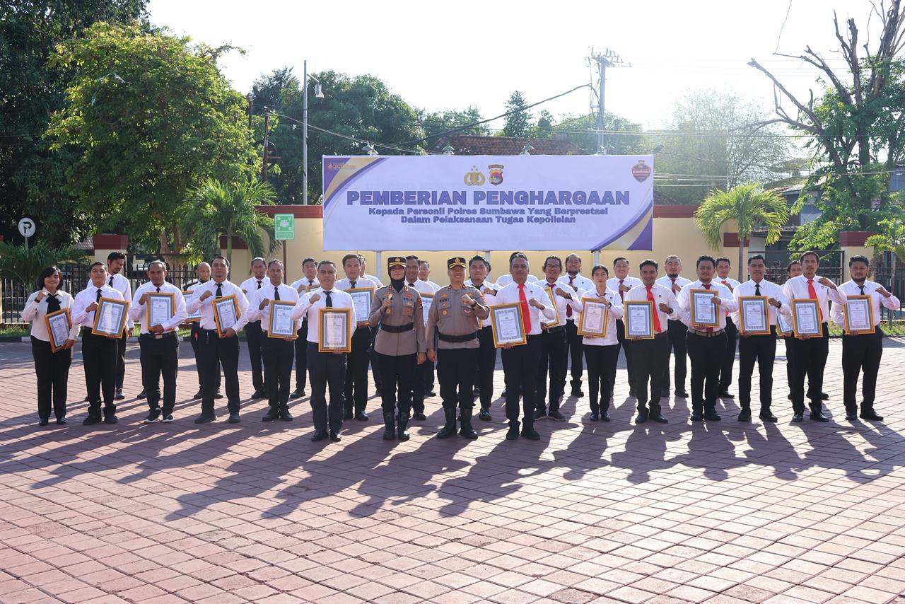 Momen utama dalam apel pagi ini adalah pemberian penghargaan (reward) kepada anggota yang menunjukkan prestasi luar biasa dalam menjalankan tugas kepolisian. Total 53 personel Polres Sumbawa menerima piagam penghargaan atas dedikasi dan kinerja mereka. Kapolres juga menginstruksikan kepada para Kepala Satuan Kerja (Kasatker) untuk proaktif mengusulkan personel berprestasi di bawah tanggung jawab mereka agar dapat diberikan piagam penghargaan sebagai bentuk motivasi.