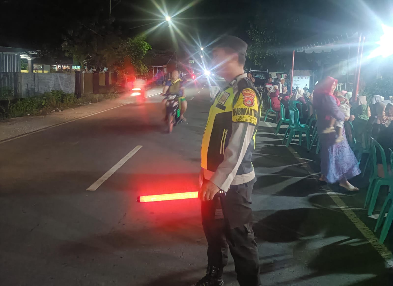 Bhabinkamtibmas Desa Tapir, hadir untuk memastikan seluruh rangkaian acara berjalan aman, dan tertib. Dalam kesempatan tersebut, ia juga menyampaikan imbauan untuk menghindari hal-hal yang dapat mengganggu keamanan bersama.