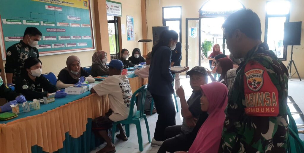 Lombok Barat, NTB – Kepedulian terhadap kesehatan masyarakat kembali ditunjukkan oleh TNI bersama kalangan akademisi. Bintara Pembina Desa (Babinsa) Sembung, Komando Rayon Militer (Koramil) 1606-08/Narmada, melaksanakan pendampingan kegiatan pemeriksaan kesehatan gratis yang digelar oleh Mahasiswa Fakultas Kedokteran dan Ilmu Kesehatan Universitas Mataram (Unram) di Kantor Desa Sembung, Kecamatan Narmada, Lombok Barat, Senin (13/10/2025).