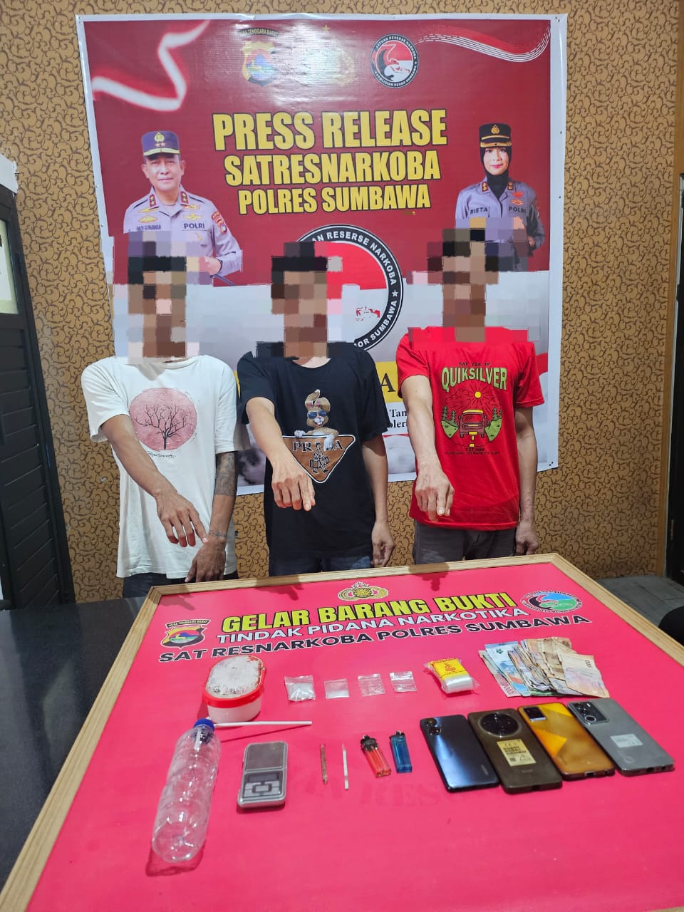 Polres Sumbawa Bekuk Tiga Pria di Buer, Sita 12,56 Gram Sabu