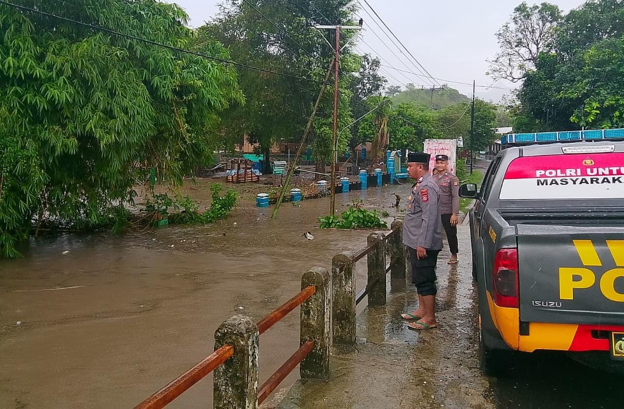 Untuk itu Personel Polsek Madapangga Polres Bima Polda NTB di kerahkan untuk membantu masyarakat yang terdampak banjir.