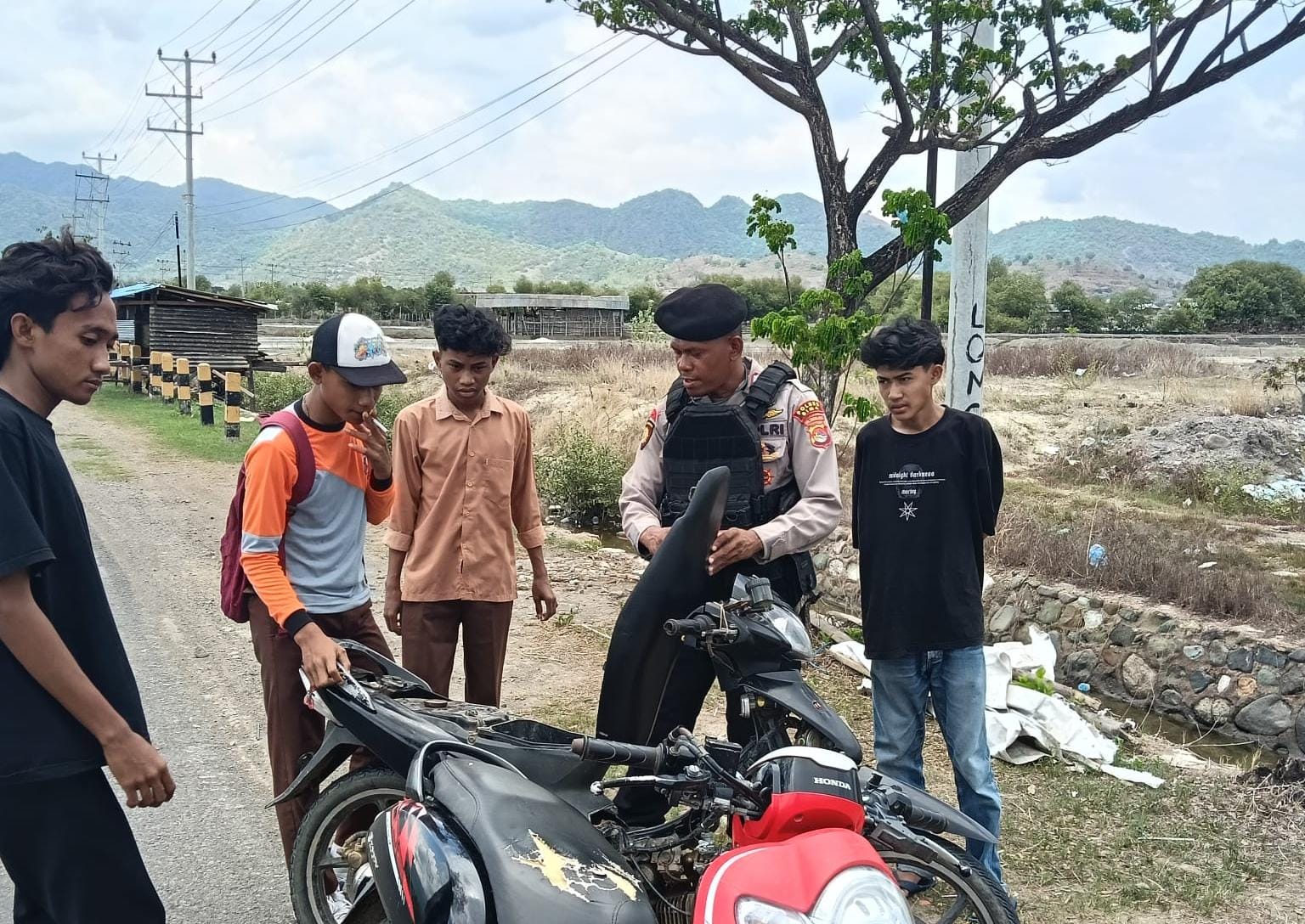 Pukul 11.30 Wita tim patroli menyambangi Desa Rasabou berdialog dengan memberikan himbauan agar masyarakat ikut berpartisipasi dalam menciptakan Kamtibmas yang kondusif di wilayah hukum Polres Bima