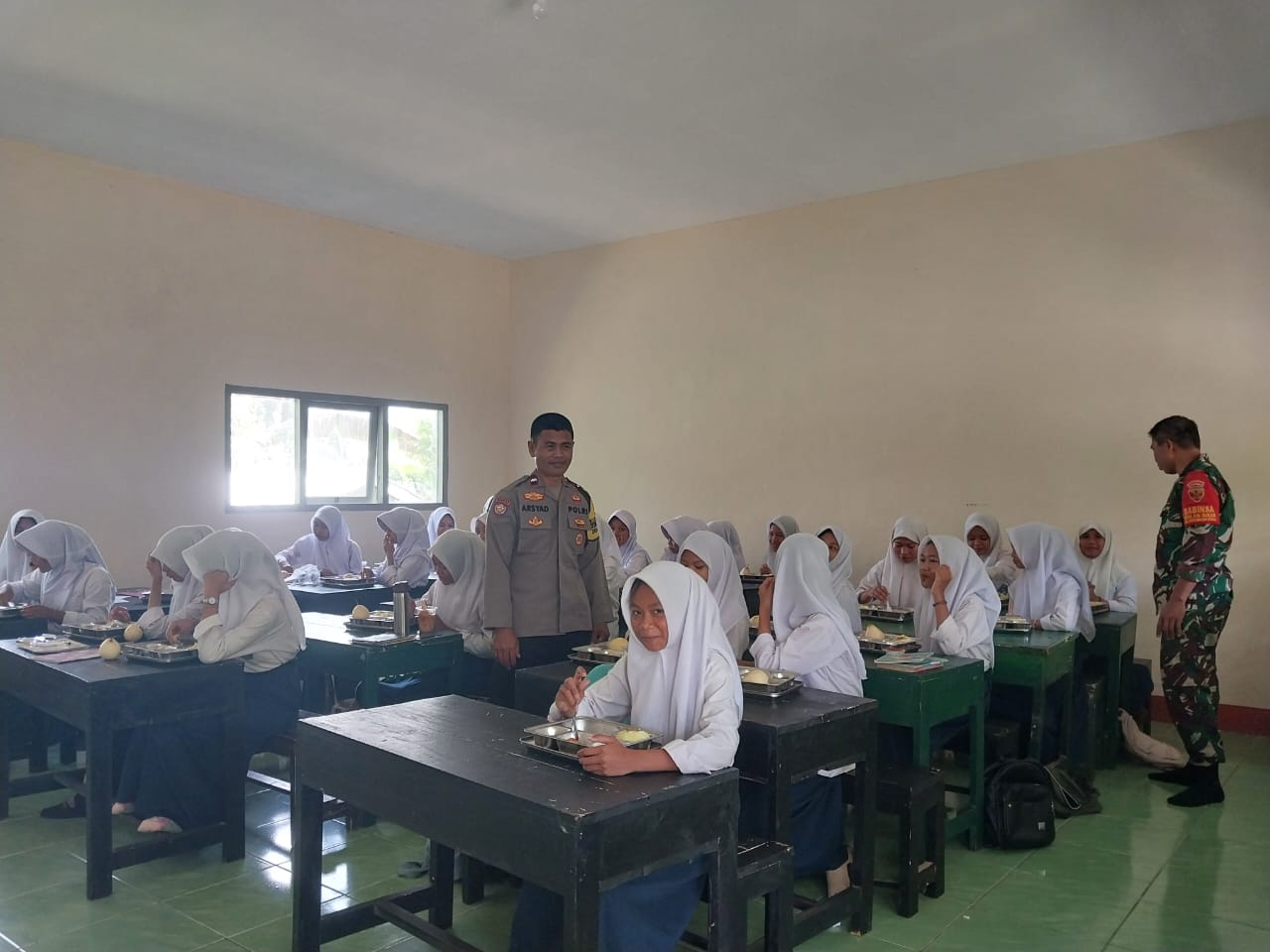 “Kami bersama Babinsa memastikan program ini berjalan aman dan tepat sasaran. Semoga kehadiran kami bisa memberikan rasa aman dan membantu kelancaran distribusi makanan bergizi bagi anak-anak serta masyarakat,” ujar Aipda Arsyad dalam kesempatan tersebut.