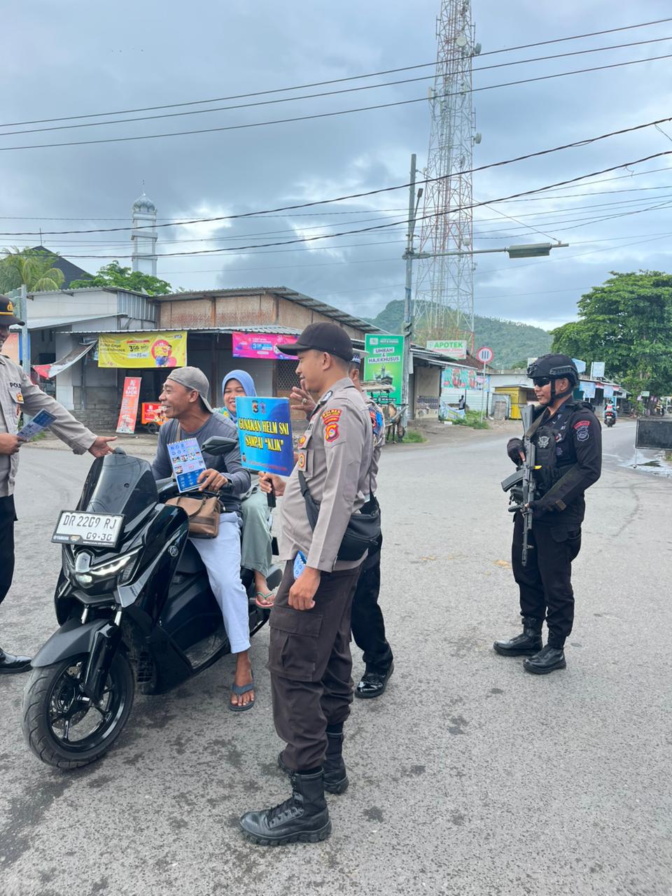 Edukasi Keselamatan , Sat Lantas Polres Lombok utara di Simpang 4 Pemenang.