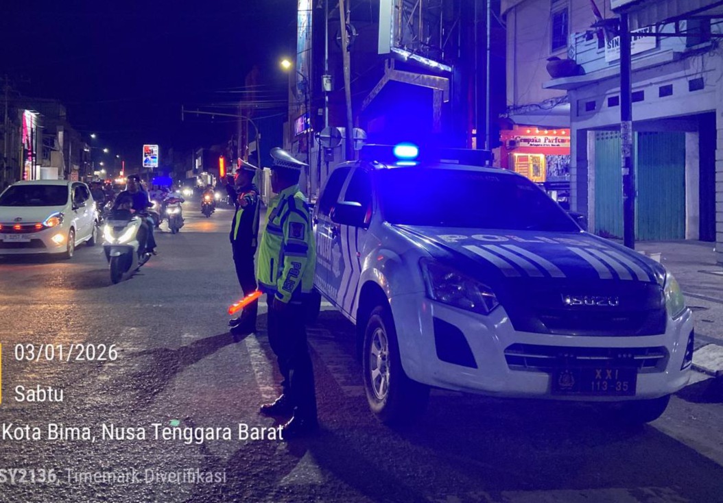 Kota Bima, NTB (04 Januari 2026) – Dalam rangka menjaga situasi keamanan dan ketertiban masyarakat (kamtibmas) tetap aman dan kondusif, Sat Samapta Polres Bima Kota melalui Unit Turjawali melaksanakan Patroli Blue Light pada Sabtu malam, 3 Januari 2026, pukul 21.30 WITA, di wilayah Cabang 4 Sarasuba dan Kelurahan Melayu, Kota Bima.