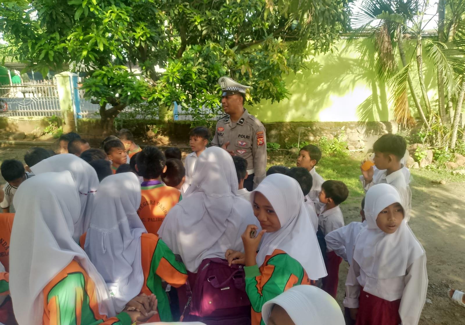 Seperti pada Senin (05/01/25) pagi dipimpin oleh Kanit Kamsel Aipda M. Fadli dan anggotanya menyambangi SDN 01 Panda Kecamatan Palibelo Kabupaten Bima.