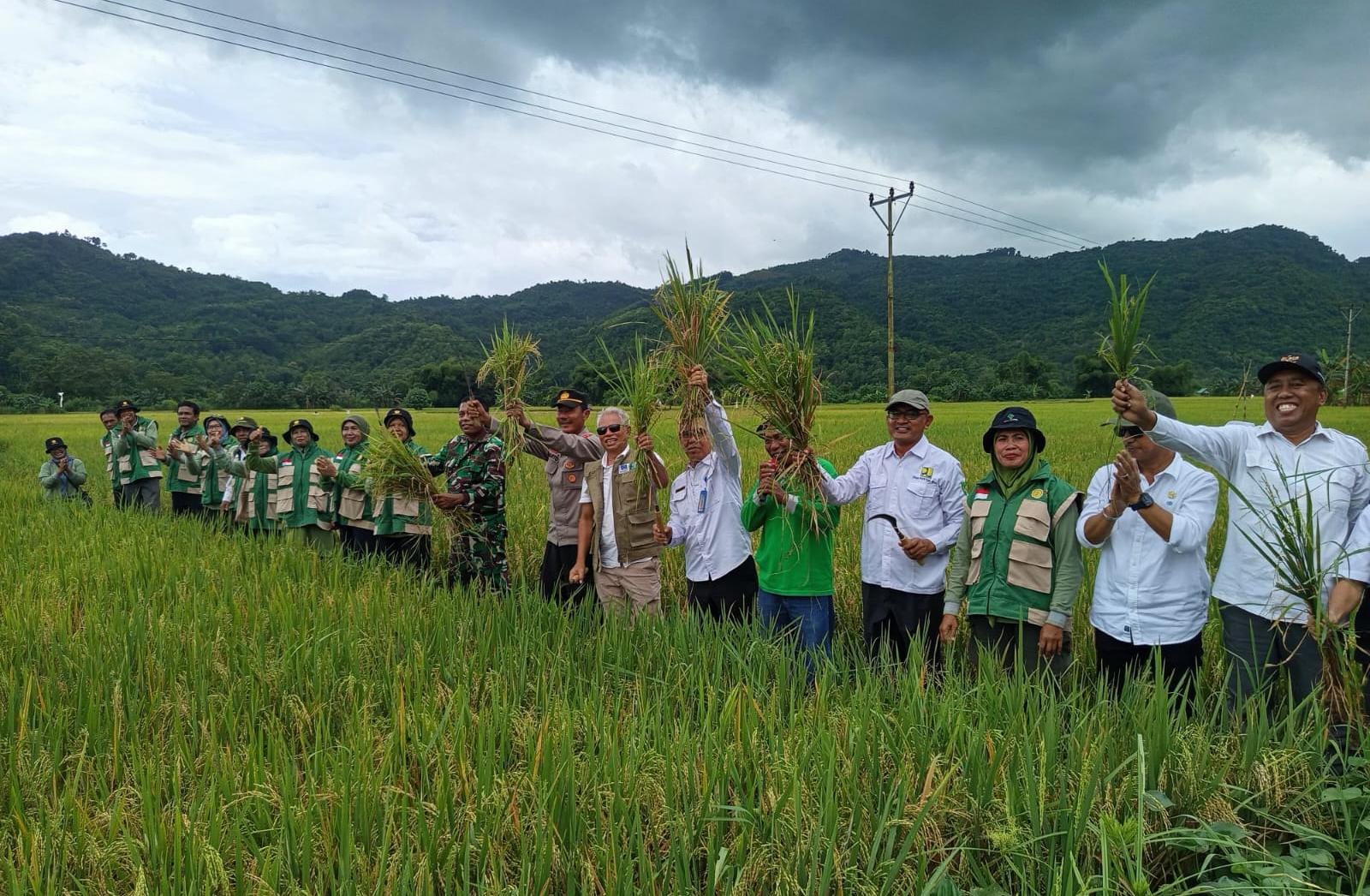 Sukseskan Program Swasembada Pangan di bidang pertanian Kapolsek Monta AKP Sudarto SH menghadiri panen raya padi yang berlokasi di Desa Simpasai Kecamatan Monta Kabupaten Bima.
