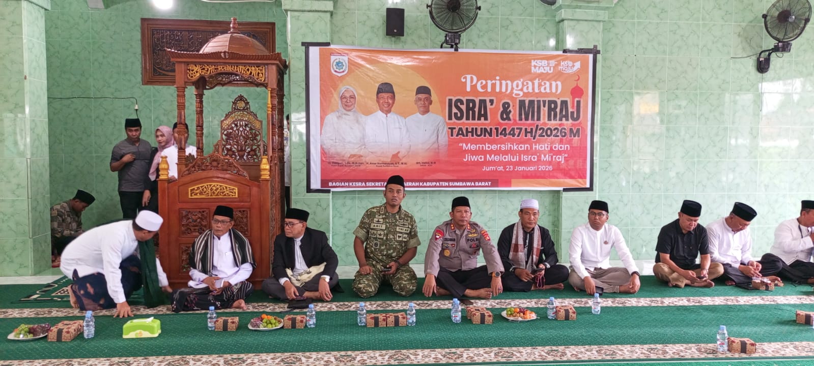 Sumbawa Barat – Pada hari Jumat, 23 Januari 2026 sekitar pukul 09.00 WITA, telah berlangsung kegiatan Peringatan Isra Mi’raj Nabi Muhammad SAW Tahun 1447 Hijriah / 2026 Masehi bertempat di Masjid Besar Nurul Falah, Lingkungan Sebok, Kelurahan Dalam, Kecamatan Taliwang, Kabupaten Sumbawa Barat. Kegiatan tersebut mengusung tema “Membersihkan Hati dan Jiwa Melalui Isra’ Mi’raj.”
