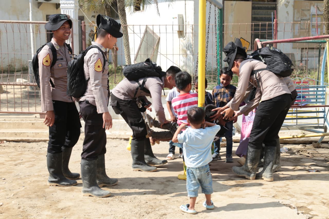 Taruna dan Taruni Akpol menyalurkan bantuan renovasi kepada TK Kemala Bhayangkari 12 Cabang Aceh Tamiang yang terdampak banjir bandang.
